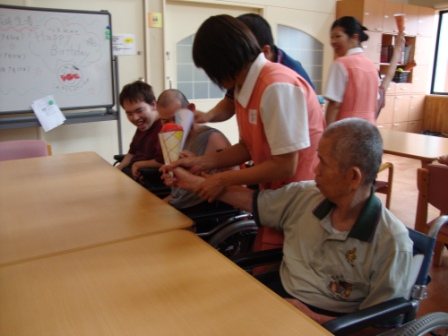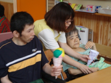 レクレーション後は皆さんで、「ハッピーバースデー」を合唱し、その後手作りアイスをいただきました。ヨーグルトの風味が効いて美味しかったとの事でした。