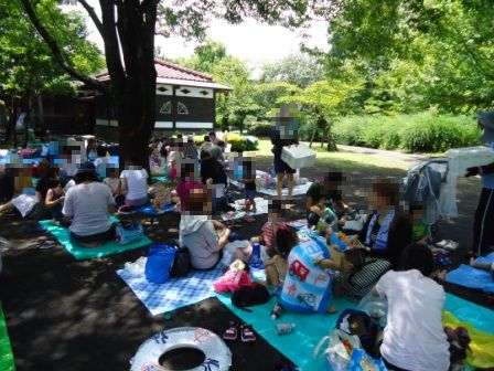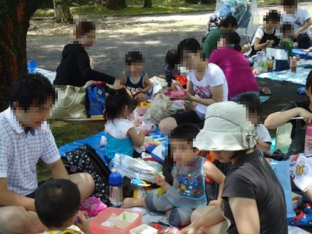 昼食です。皆さん川で泳いだ後でお腹が空いたようで、夢中でお弁当を頬張っていました。