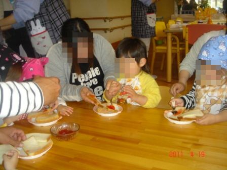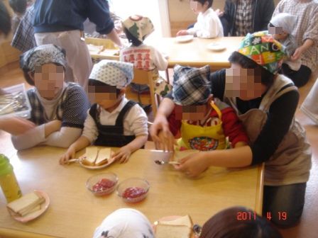 今回はジャムサンドを作った後本館裏の芝にて試食する予定でしたが、