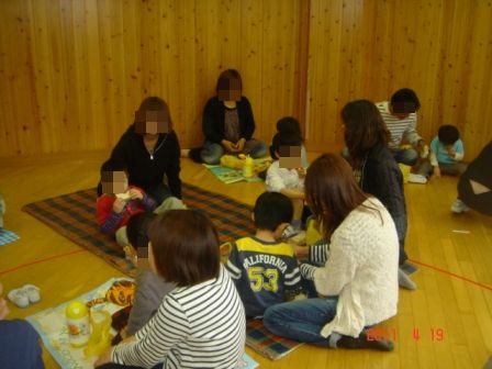 悪天候の為、急遽室内にて試食となりました。皆様持参した敷物を敷き、