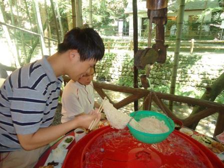 団子を丸めて…湯通しの作業へ移ります。