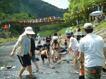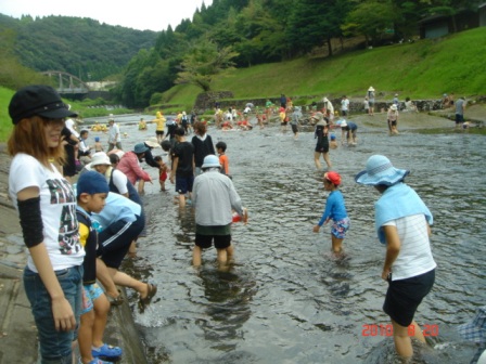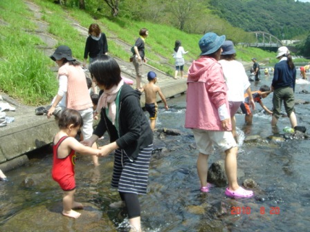 初めて川に入るというお子様も多く、怖がりながらもお母様やお父様の手を