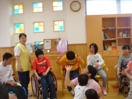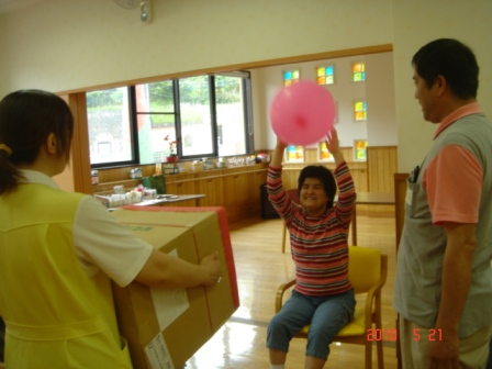 風船バレーをしました。エルディアの皆様の輪