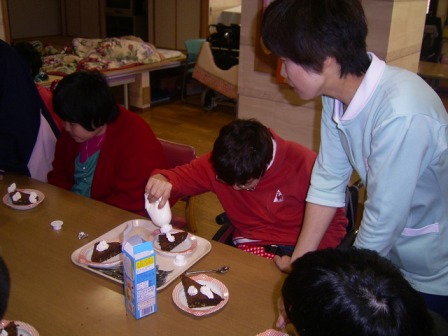 ケーキを作ってもらい、生クリームを