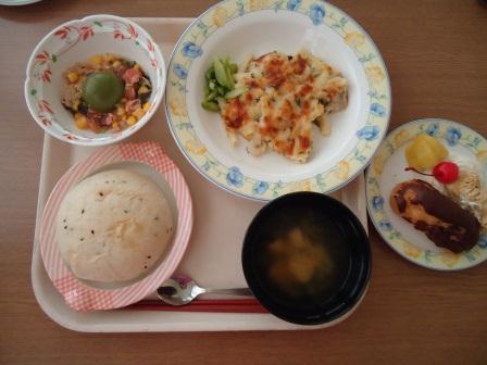 ・海老ピラフ・コーンスープ・デザートでした♪