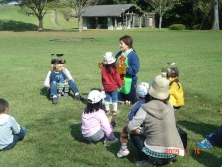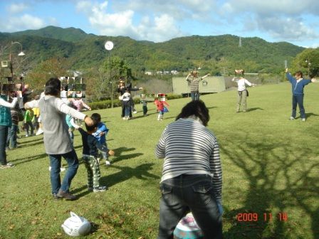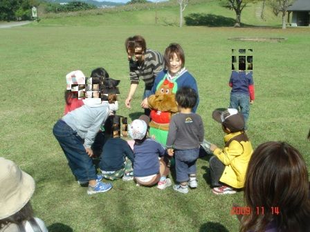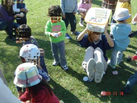 11月14日(土)錦江湾公園に園外活動に行ってきました。親子で玉入れやかけっこを行いました。天候も晴れて、親子で元気一杯活動しました。遊具でも楽しく遊びました。