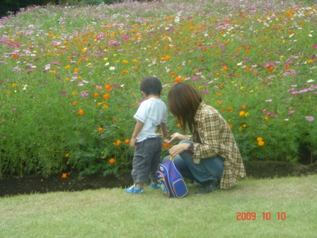 大きなパンツに、お母さんと一緒に