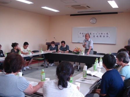まず、施設長の挨拶で始まり、各工房の現況報告、9月に開所するホームケア館概要、そして 家族