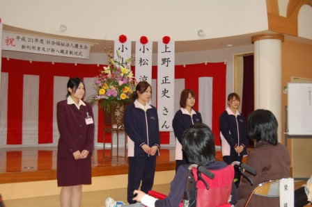 4月1日(水)に平成21年度を迎え、新利用者及び新入職員歓迎式を行いました。