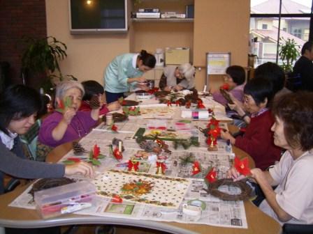 こちらは「クリスマスリース作り」のサークル☆丁寧に飾り付け中です♪