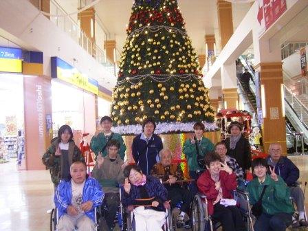 買い物希望のグループの園外は「オプシアミスミ」でした♪大きなクリスマスツリー前で写真撮影です☆