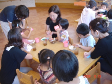 9月11日(木)、お月見会を行いました。友達同士でお相撲をとったり、親子でとったり。活気にあふれたお月見会でした。
