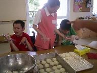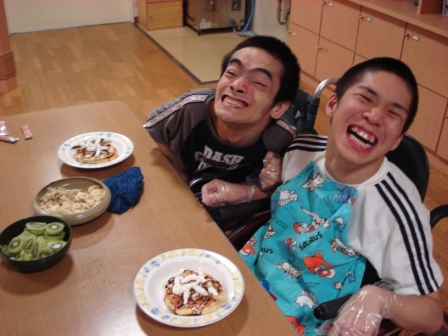 9月18日(木)慶会があり、皆で楽しくホットケーキを作りました。