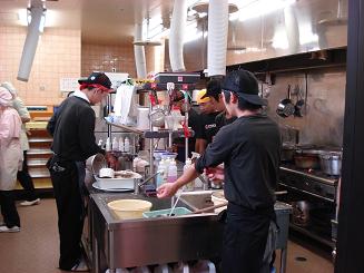 施設厨房で奮闘する あいあいラーメンのスタッフの方々!