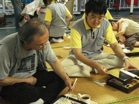 外で、それも夜の船上で食べるお弁当は一味違うかも?